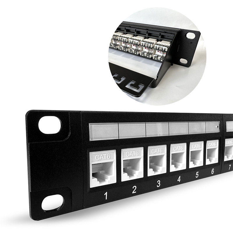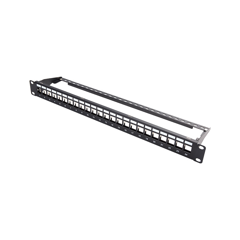 Blank patchpaneel: een leeg patchpaneel is een paneel zonder vooraf geïnstalleerde poorten of connectoren. Het dient als een flexibele oplossing voor het aanpassen van de connectiviteitsbehoeften van een specifieke netwerkinstallatie. Blanco patchpanelen zorgen voor de installatie van keystone -aansluitingen of andere modulaire connectoren op basis van de specifieke vereisten van het netwerk.